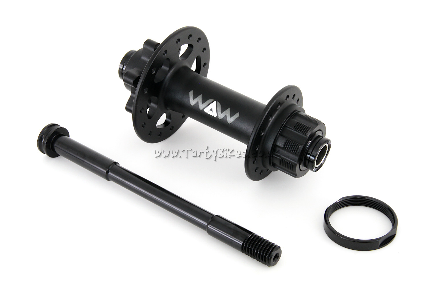 - Hub is supplied with a matching black WAW 12mm axle with a machined centre for reduced axle weight.